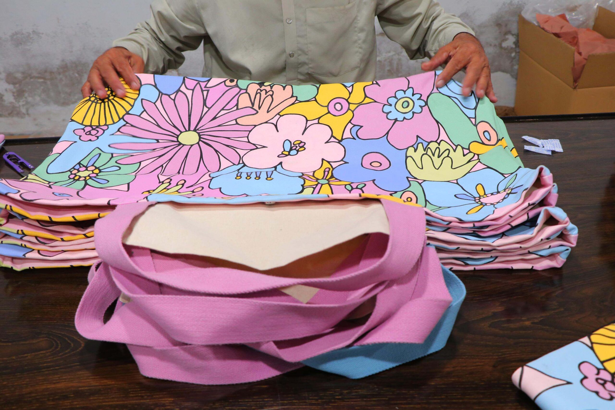 Hver bag er romslig og funksjonell, med en praktisk innerlomme for nøkler, mobil og småting du vil ha for hånden. Den er laget av slitesterkt og bærekraftig resirkulert bomull, håndlaget med omtanke i Bokharis systue i Pakistan – der hver veske bidrar til trygge arbeidsplasser og skolegang for barn.