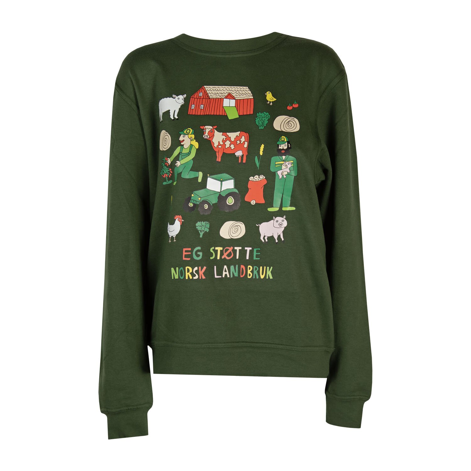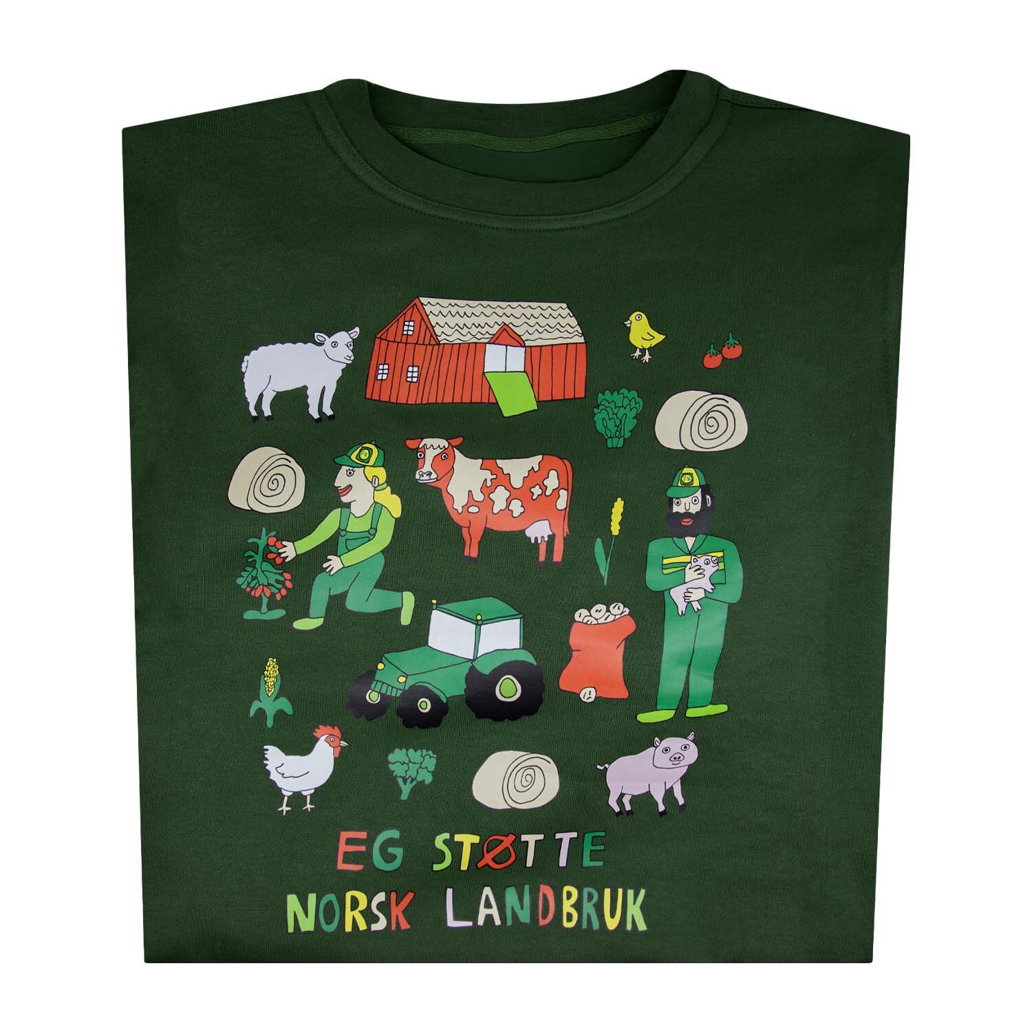 Eg Støtte Norsk Landbruk Grønn Genser Anette Moi x Bondekompaniet: Unik collegegenser med Anette Moi-design som hyller norske bønder. Komfortabel og myk, med tydelig budskap: Eg støtte norsk landbruk! Silketrykket genser i nydelig grønn-farge Unisex Begrenset opplag kr 499 Clothing size Velg et alternativ2XLSXLNullstill Eg Støtte Norsk Landbruk Grønn Genser antall - + Legg i handlekurv